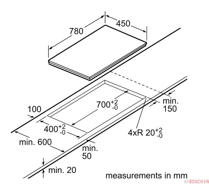 | Kích thước khoét đá | 59 × 700 × 400 mm |