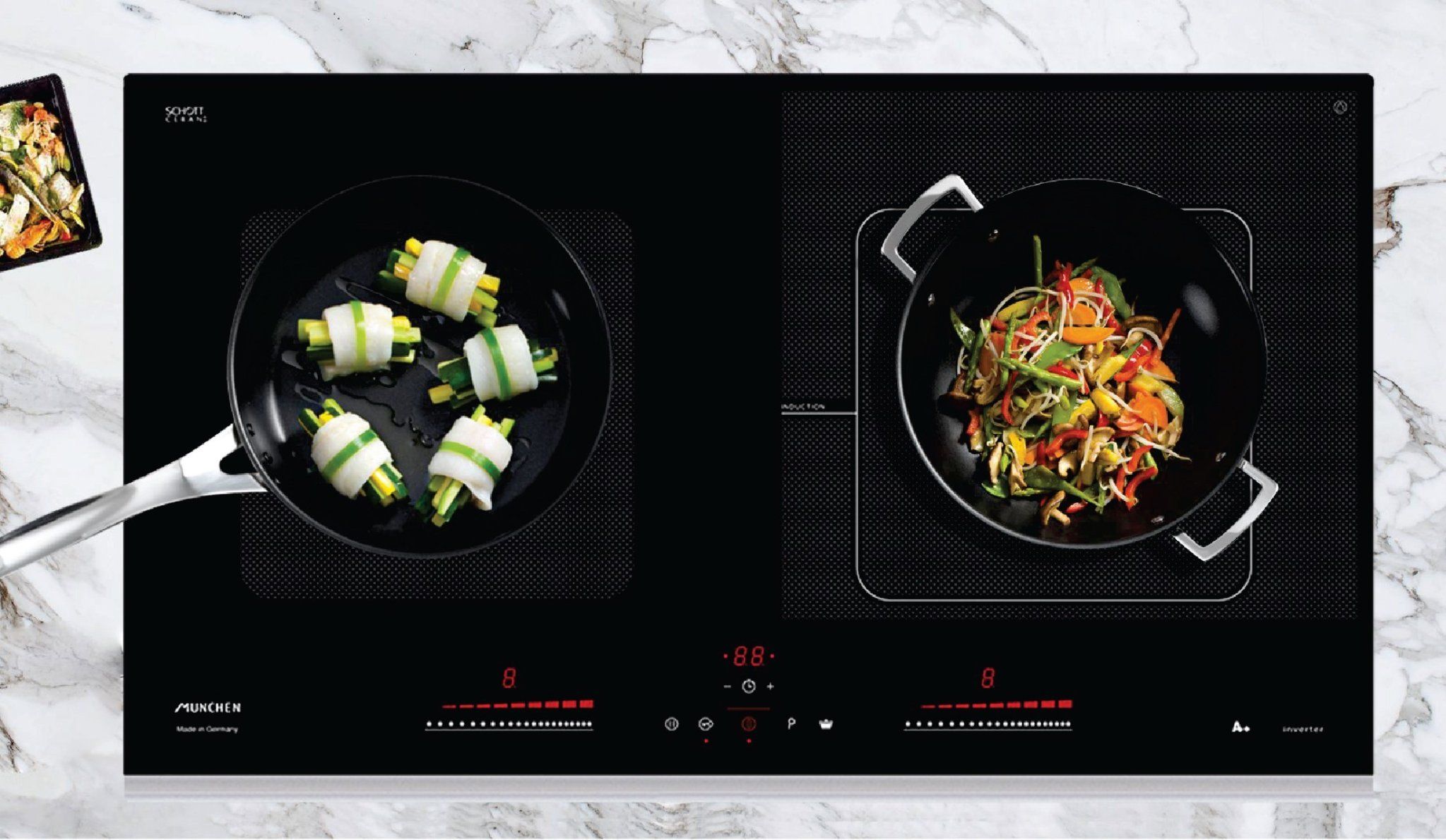 Bếp điện từ Munchen không gây hại như bếp gas hay bếp than truyền thống, hoạt động dựa vào cuộn cảm tạo ra trường điện từ được vận hành và điều khiển bởi mạch từ, nhờ vào độ rung điện từ sẽ trực tiếp tạo nhiệt trong nồi nấu để làm chín thực phẩm. Với các tính năng thông minh, chức năng Booster nấu nhanh siêu tốc giúp tiết kiệm điện năng và thời gian nấu, cùng thiết kế mặt bếp bằng vật liệu SchottCeran, bếp điện từ Munchen mang lại sự an toàn, là sự lựa chọn đáng tin cậy cho gia đình bạn.