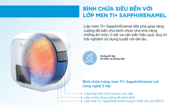 Bình chứa tráng men Ti+ SapphirEnamel công nghệ 3 lớp
