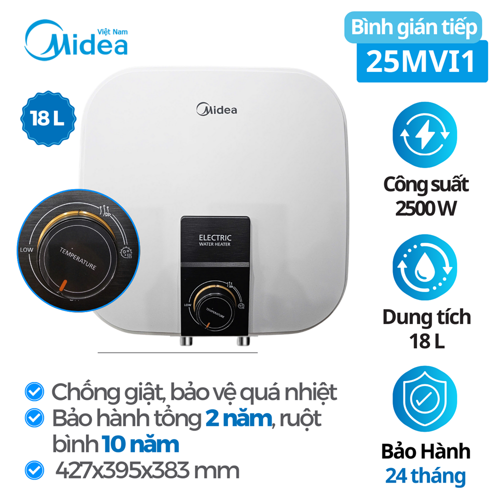 Đây là yếu tố quan trọng giúp người dùng yên tâm khi lựa chọn bình nóng lạnh Midea 25MVI1 cho gia đình.