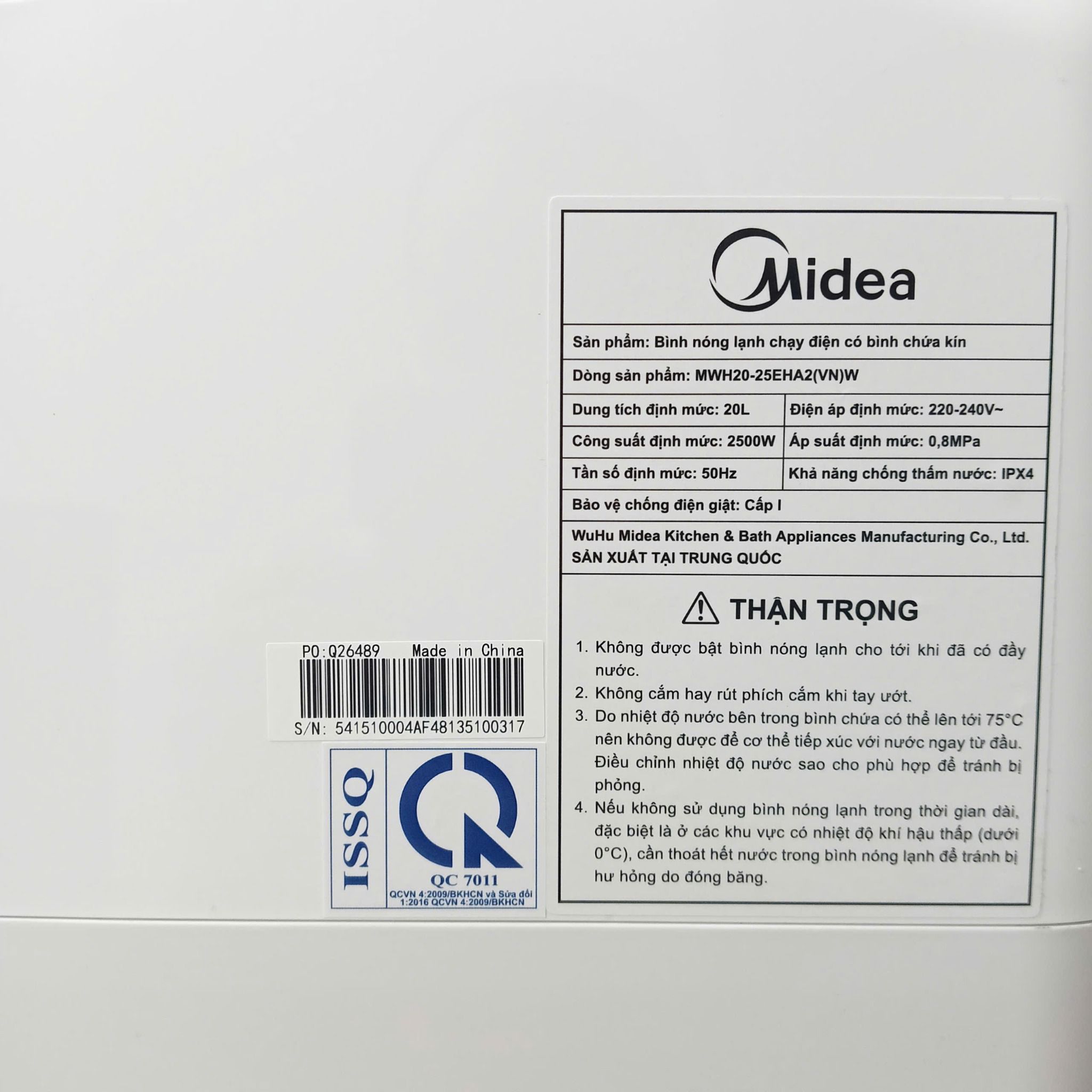 Bình tắm nóng lạnh Midea MWH20-25EHA2 đi kèm chế độ bảo hành dài hạn lên đến 10 năm cho ruột bình, 5 năm cho thanh đốt gia nhiệt và 2 năm bảo hành tổng thể. Chế độ bảo hành này không chỉ khẳng định chất lượng sản phẩm mà còn giúp người dùng yên tâm hơn khi sử dụng, đảm bảo quyền lợi trong trường hợp cần bảo trì hay sửa chữa.