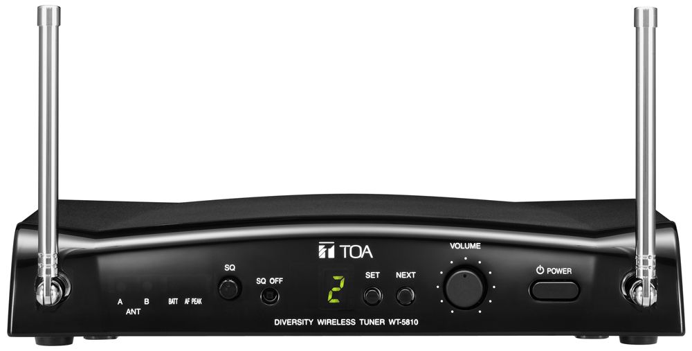 Bộ thu không dây UHF: WT-5810 hoạt động theo nguyên lý tổng hợp mạch vòng khó pha kín (PLL) và sử dụng kỹ thuật phân tập của TOA được sử dụng trong hệ thống không dây UHF. Thiết bị bao gồm mạch khử tạp âm giúp giảm thiểu nhiễu ồn môi trường.