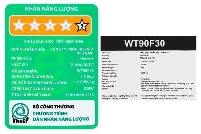 - Máy giặt lồng đứng Hisense 9 kg WT90F30