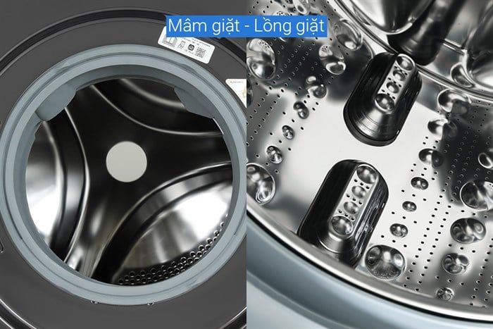 - Lồng giặt thép không gỉ sáng bóng, chống vi khuẩn, bền bỉ theo thời gian.