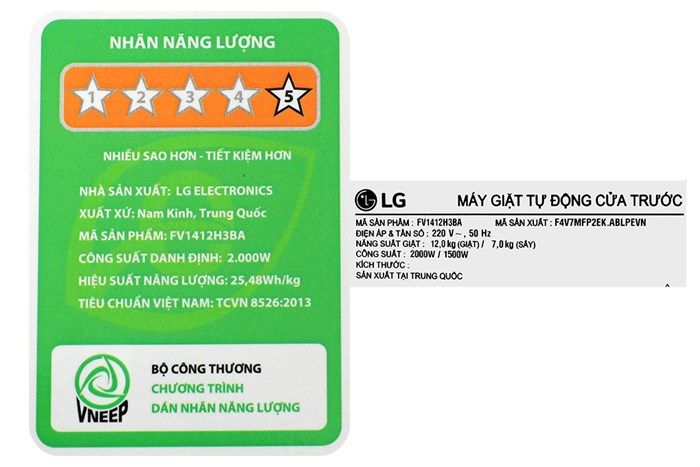 Máy giặt LG FV1412H3BA có khối lượng giặt 12 kg và sấy 7 kg, thích hợp cho gia đình trên 7 người hoặc nhu cầu giặt sấy lớn. Tích hợp sẵn 14 chương trình đa dạng như giặt nhanh 14 phút, giặt ngừa dị ứng, giặt đồ tinh xảo, đồ thể thao, giặt TurboWash 39 phút, sấy ngưng tụ…