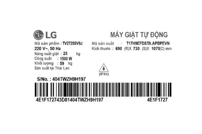 - Máy giặt lồng đứng LG AI DD Inverter 25kg TV2725SV9J