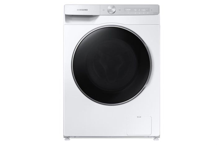 - Phong cách Bespoke màu trắng, máy giặt lồng ngang – dễ xếp chồng cùng máy sấy.