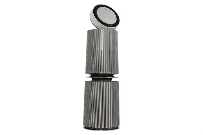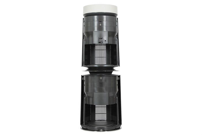 Máy sở hữu thiết kế 2 tầng độc đáo, cho phép hút và phân phối luồng khí sạch theo mọi hướng 360°, giúp làm sạch không khí đồng đều khắp không gian. Kiểu dáng sang trọng, màu sắc trang nhã phù hợp nhiều phong cách nội thất.