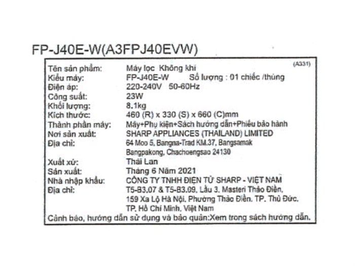 | Thương hiệu | Sharp (Nhật Bản) |