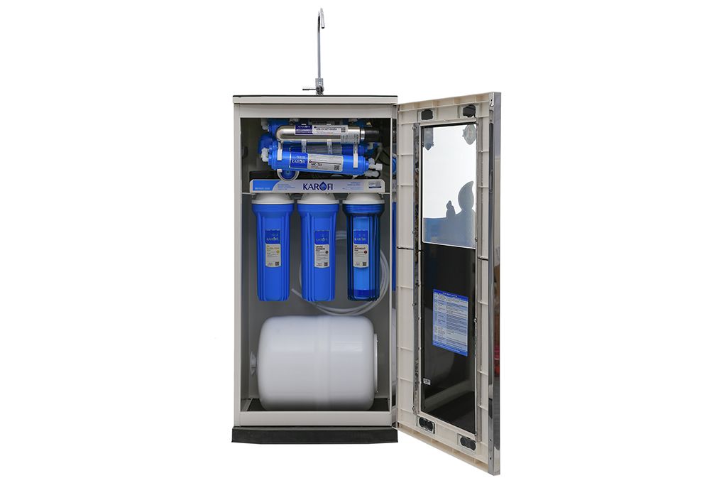 - Tiết kiệm điện năng: van áp cao tự động ngắt điện khi nước đầy tránh lãng phí điện, chỉ tiêu thụ khoảng 3 kw/tháng. Xem thêm tính kinh tế khi sử dụng máy lọc nước Karofi tại đây