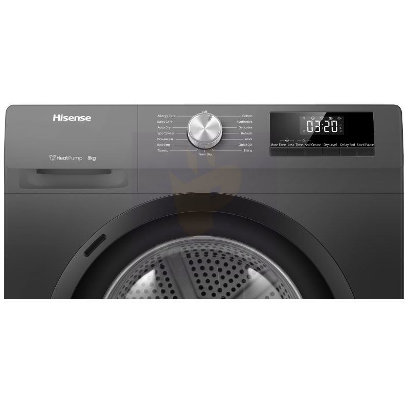 Máy sấy cửa trước Hisense DH80N1T – 8kg, bơm nhiệt, màu xám