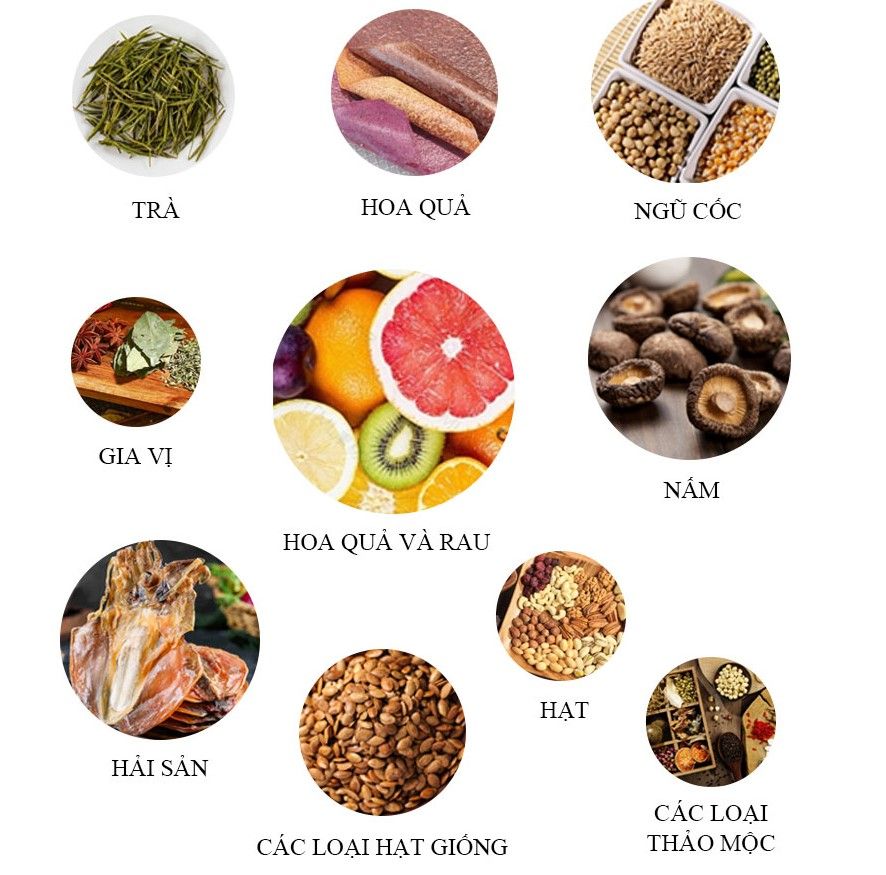 Sấy được nhiều loại nguyên liệu