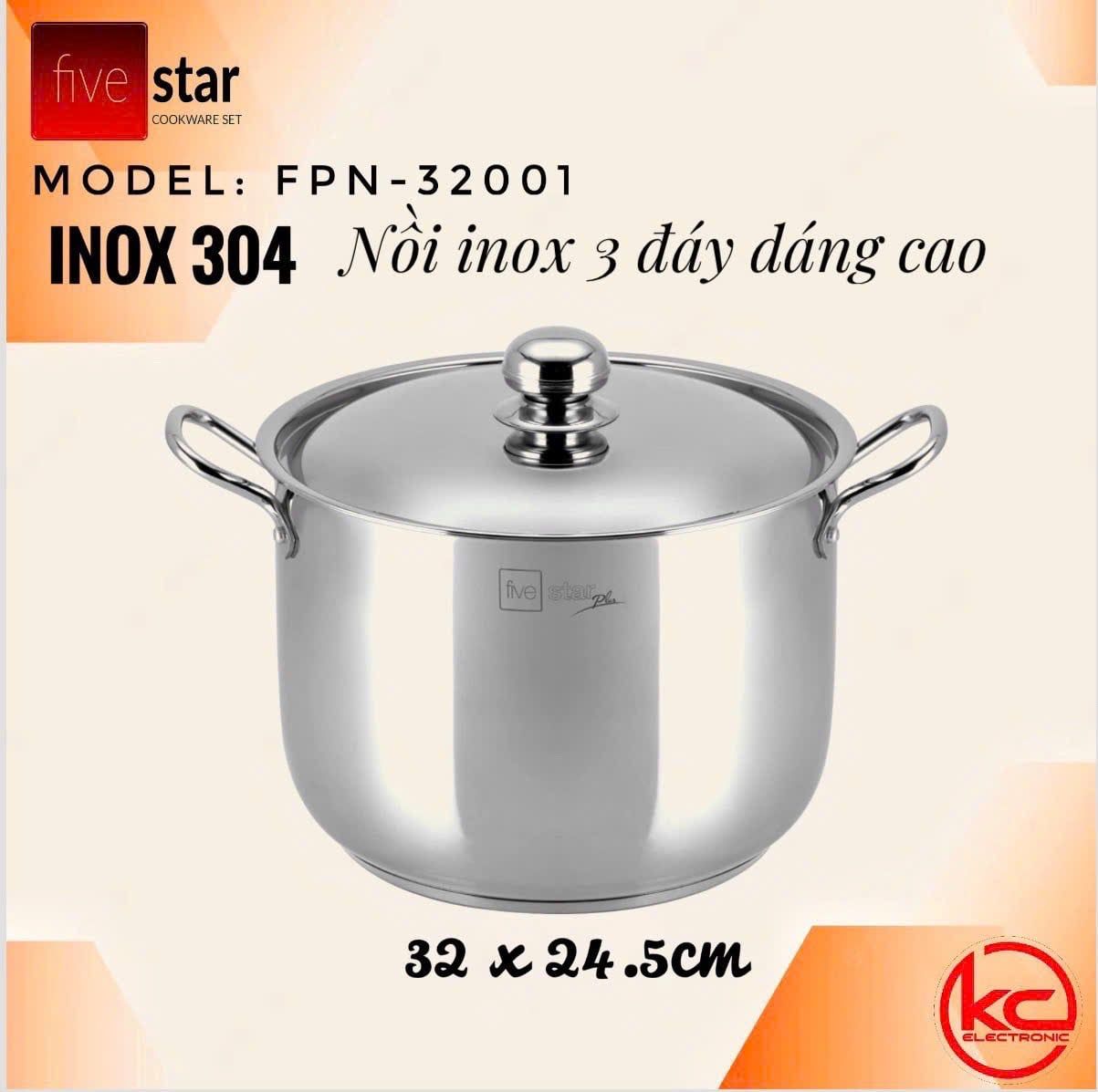 - Nồi Inox FiveStars FPN32001, inox 304, 03 đáy, 32cm, nắp inox