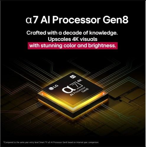 - Chất lượng hình ảnh 4K. Nâng cấp hình ảnh và âm thanh vòm nhờ Bộ xử lý AI alpha 7 4K Gen8.