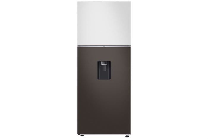 ngoài là mẫu tủ lạnh 2 cánh phong cách Bespoke, thiết kế ngăn đá trên, trang bị công nghệ Inverter tiết kiệm điện. Dung tích 406 lít phù hợp cho gia đình từ 3–6 người, tối ưu bảo quản thực phẩm. Phân phối chính hãng tại Điện máy Dũng Vân.